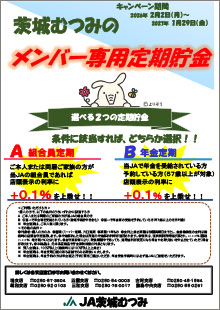 - JA茨城むつみ30周年記念 金利上乗せ定期貯金キャンペーンのお知らせ