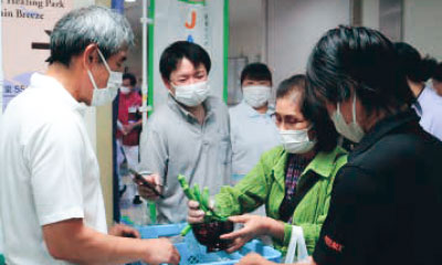 園芸部会では、地域貢献活動の一環として「胡瓜」、「茄子」の無料配布や地元の野菜の販売を行いました。